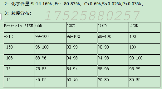 1.化学含量:Si:14-16% ,Fe:80-83%,C<0.6%,S<0.02%,P<0.03%
